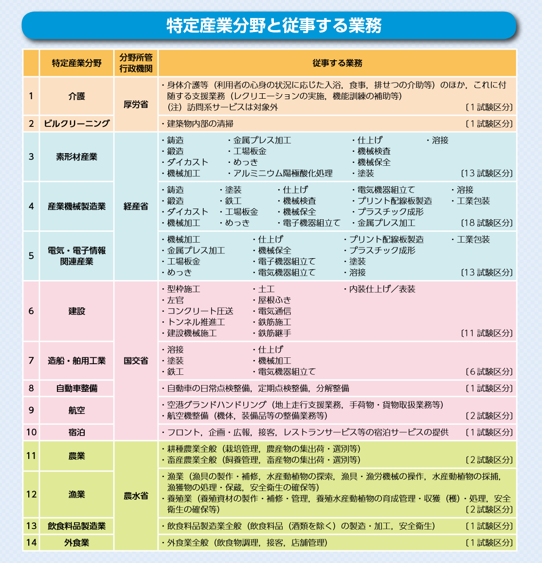 - ※建設、造船・舶用工業のみ特定技能2号の受入れ可。